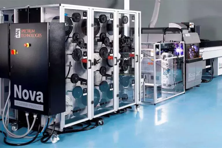 公司着手开发了一种基于喷墨技术的新型线束标印机——NovaJet。NovaJet提供白色墨水标记,并通过紫外线固化来增强持久性。首套自动化NovaJet系统已交付给西科斯基公司,以替代早期定制的喷墨线束标印机